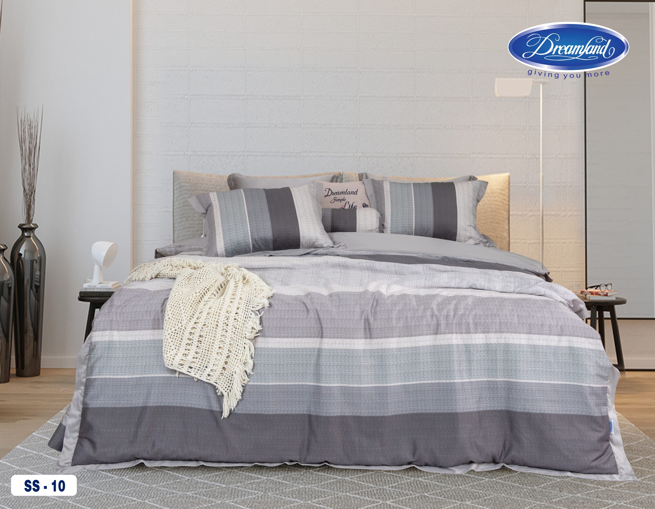 Sắc xanh, tím nhạt phối cùng hoa văn tinh giản tạo nên không gian ngủ đậm chất châu Âu – yên tĩnh, sang trọng, đầy nghệ thuật. Dreamland tin rằng giấc ngủ không chỉ là nghỉ ngơi, mà còn là hành trình tái tạo cảm xúc. Bộ chăn ga như lời mời gọi bước vào một thế giới đầy êm ái, nơi từng đường kim mũi chỉ đều mang theo sự quan tâm đến từng trải nghiệm